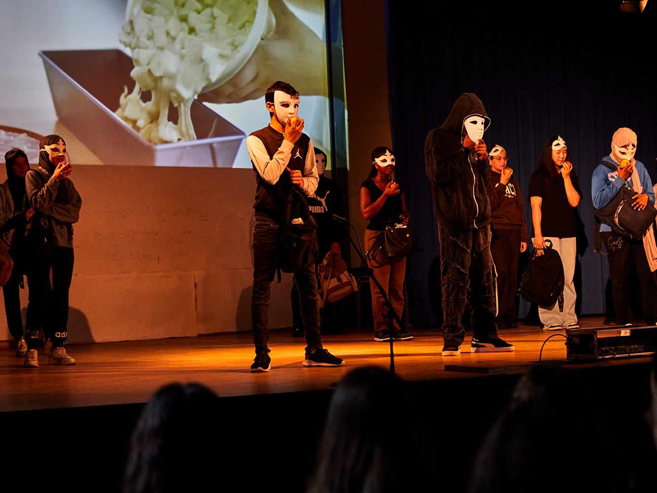 Aus diesen künstlerischen Fragmenten wuchs eine intermediale Performance, getragen von zehn Jugendlichen, die beim OHStival auf der Bühne der Lise-Meitner-Halle präsentiert wurde und zum Nachdenken anregte. Ein Auszug daraus war im November 2025 beim Kulturgipfel zu sehen.