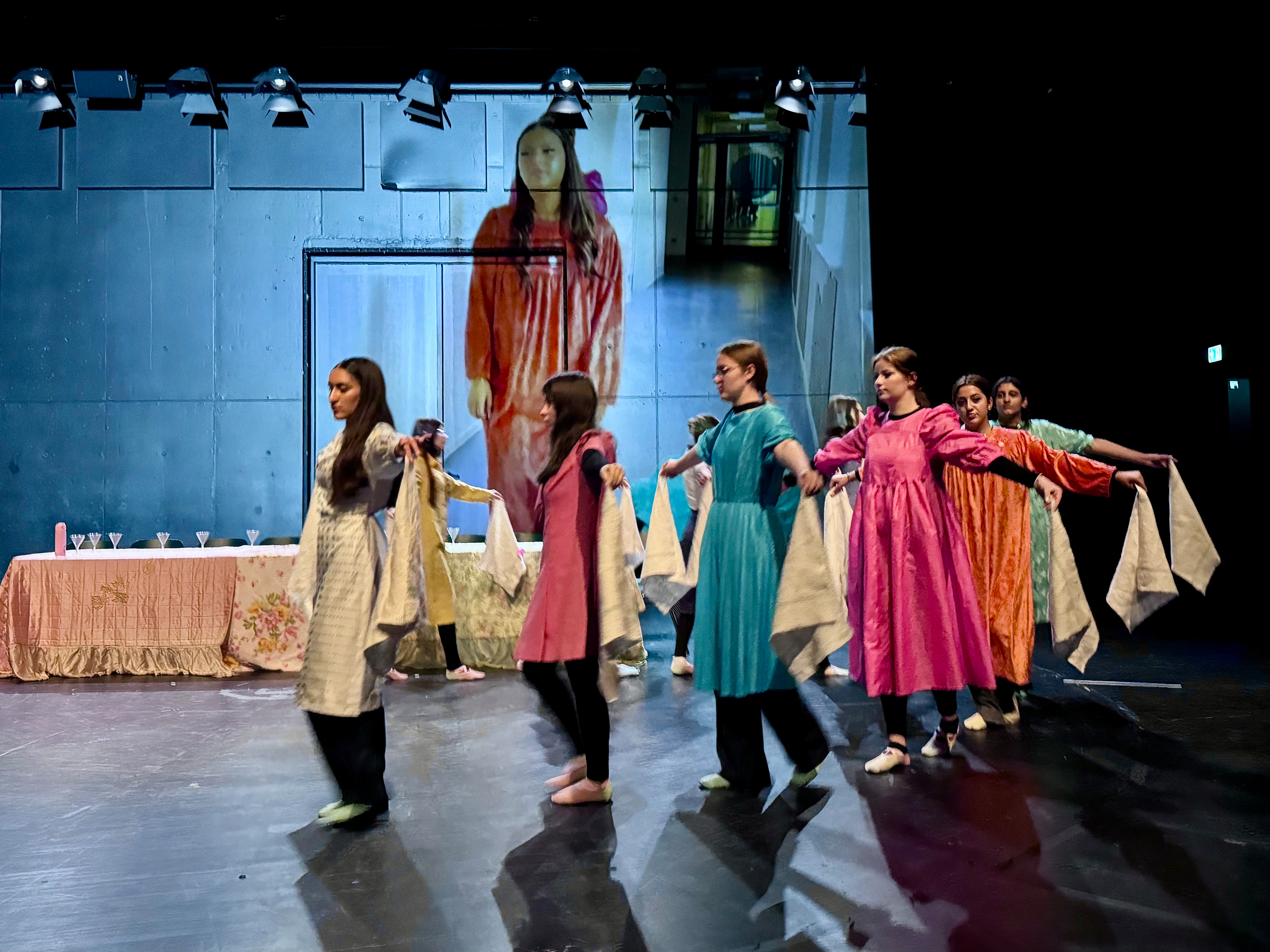 Der Arbeitsprozess begann mit einer offenen Recherche: In Interviews mit Familien, Gesprächen mit Expert:innen sowie durch das Sammeln von Texten, Fotografien und persönlichen Erinnerungen näherten sich die Schüler*innen den Themen an. Auf dieser Grundlage entwickelte sich eine künstlerische Auseinandersetzung, in der Szenen, Erzählungen, Musik und performative Bilder zu einer gemeinsamen Collage zusammengeführt wurden. Den Abschluss bildeten Aufführungen in der Schule und im öffentlichen Raum, die nicht als fertige Ergebnisse, sondern als Einladung zum Dialog verstanden wurden – begleitet von Gesprächen mit den Zuschauer*innen.